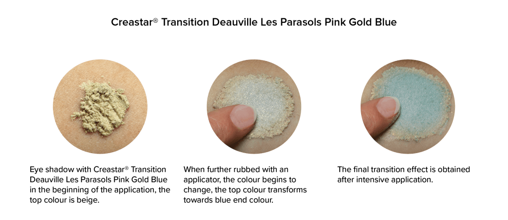 Our Creastar® pearlescent shades for Deauville 1916 bring a new texture of extreme softness and excellent adherence to the skin.